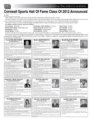 Twelve inductees representing eight sports will be part of the Cornwall Sports Hall of Fame Class of 2012.