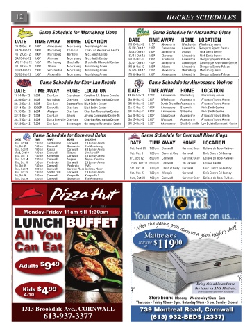 TH 04-Oct-12 7:30P Char-Lan Casselman Complexe J.R. Brisson Complex FR 05-Oct-12 8:30P Akwesasne Morrisburg Morrisburg Arena
