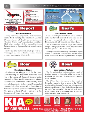 Morrisburg (in the Arena) sportsfi x@bellnet.ca 613-935-7503 www.homefinderweekly.com