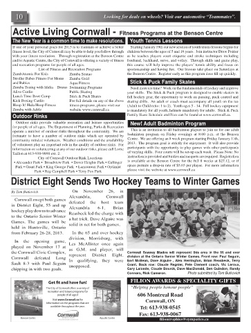 the Cornwall Civic Complex, Cornwall Seaway Blades will represent this area in the 55 and over