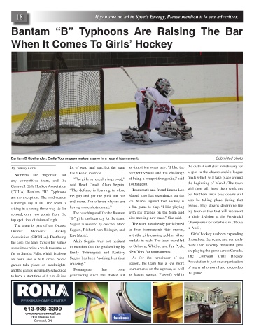 far as Smiths Falls, which is about Emily Tourangeau and Kortney New York for tournaments. The Cornwall Girls Hockey