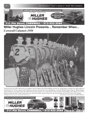 This photo show’s the 1950’s edition of the once popular Cornwall Calumets Goalie Ellery Maloney leads the way. Sports Energy recognizes some other members of