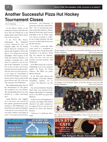teams. “It is an open division hockey The 4 Saison Team from Valleyfield Quebec winners of the Bud division in the