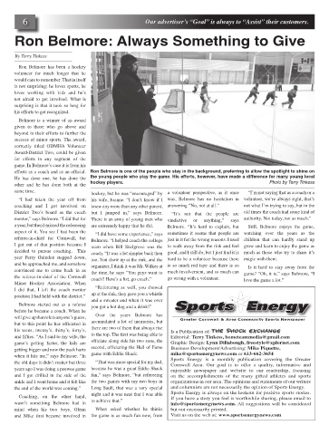 efforts as a coach and as an official. Ron Belmore is one of the people who stay in the background, preferring to allow the spotlight to shine on