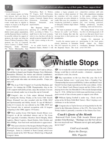 Continued from page 5 Hawkesbury, Back in Motion, conduct a legacy program over competition continues until early