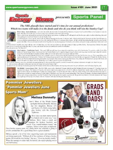 parent, life would be very boring,” she says. “I love my hockey family.”