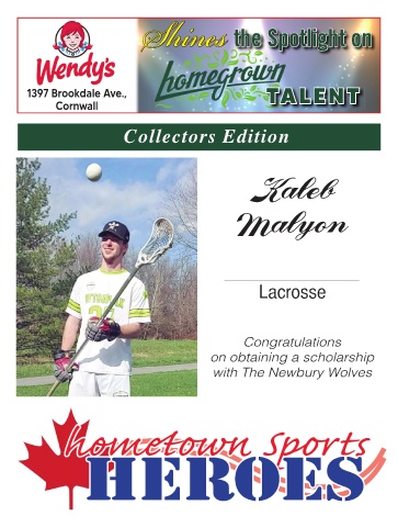 S ines the Spotlight on S ines the Spotlight on TALENT 1397 Brookdale Ave., T ALENT Cornwall Collectors Edition Kaleb Malyon Lacrosse Congratulations on obtaining a scholarship with The Newbury Wolves