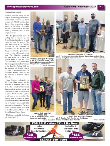 and hurry hard!!!!! L To R: Christine Piche, Donna Men’s Golf and Curl Champs