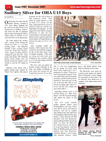 outside to roof the OT winner in the tourney final. OHA Team arrival back at home Monday Photo Submitted