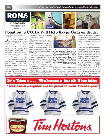 took place in Ottawa in April 2013. generosity of their sponsors. With (L-r) Carl Major, PepsiCo Canada final decision to grant the funds and