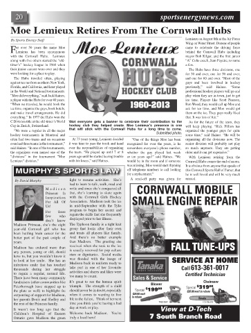 MURPHY’S SPORTS LAW off telephone numbers to call looking this Cornwall Sports Hall of Famer, that