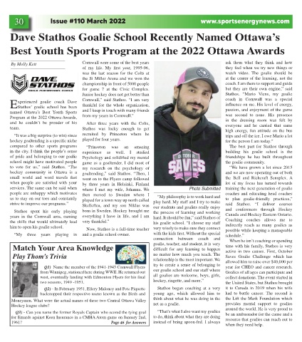 Dave Stathos Goalie School Recently Named Ottawa’s