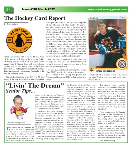 FReport, we will look at the great Joe Sakic. The card that is featured is also from UD