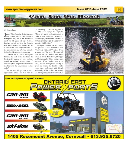East Powersports and aspires to be Riding his machine for fun, Giroux