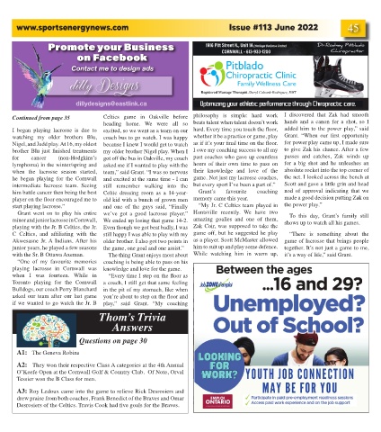 Continued from page 35 Celtics game in Oakville before philosophy is simple: hard work I discovered that Zak had smooth