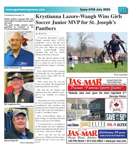 at the Upper Canada Course again Soccer Junior MVP for St. Joseph’s