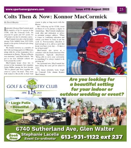 the Colts was being a part of a CJHL team, MacCormick also serves as a