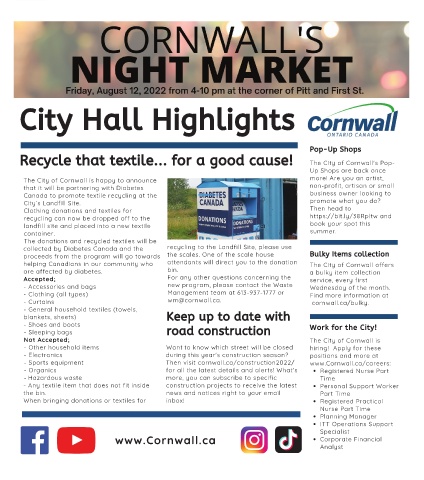 - Sports equipment Then visit cornwall.ca/construction2022/ www.Cornwall.ca/careers: