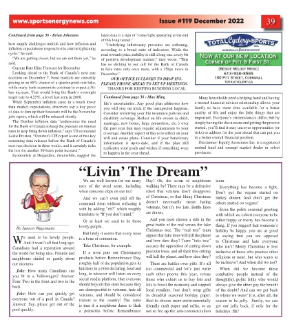 Looking ahead to the Bank of Canada’s next rate December.” 613•938•8585