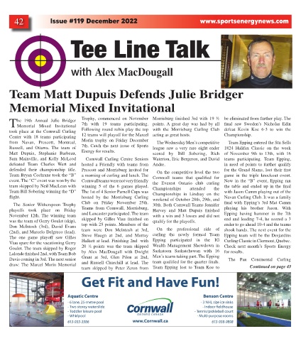 Goulet. The team skipped by Roger 20 ½ points was the team skipped Check next month’s Sports Energy
