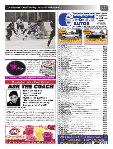 1307 Pitt Street (corner of 13th) • Cornwall • (613) 938-6772 www.car-o-line.ca Inhouse and bank financing