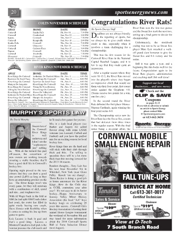 River Kings De Cornwall Èperviers De Sorel-Tracy Fri., Nov. 8 ................ 8:00 PM an impressive climb that would see Support our local
