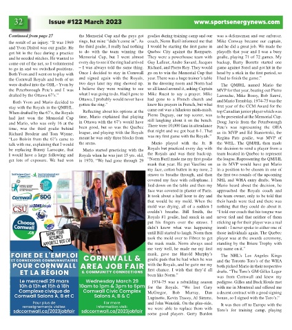 Continued from page 27 the Memorial Cup and the guys got goalies during training camp and our was a defenseman and our enforcer.