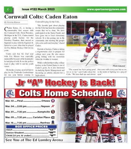 By Victoria Klassen Cornwall to play for the Colts.