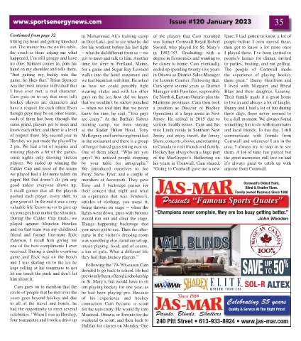 Continued from page 32 to Muhammad Ali’s training camp of the players that Cam recruited lease, I had gotten to know a lot of