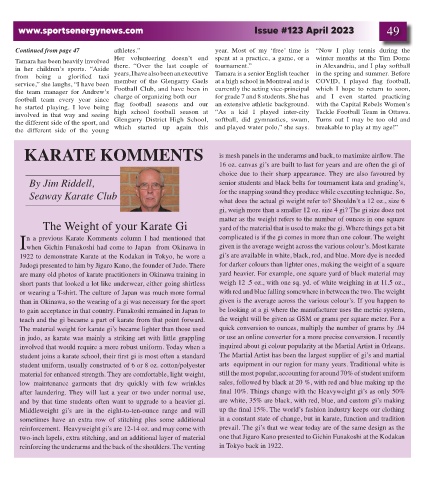 n a previous Karate Komments column I had mentioned that complicated is if the gi comes in more than one colour. The weight