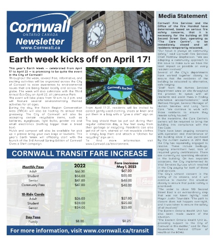 For more information, visit www.cornwall.ca/transit Roumeliotis, Medical Officer of