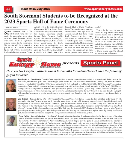 Submitted Article August 11th at the South Stormont (karate). Hall of Fame President, sports.”