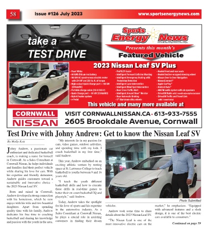 dedicates his free time to coaching Sales Consultant at Cornwall Nissan, details about the 2023 Nissan Leaf SV. design, it is one of the best electric