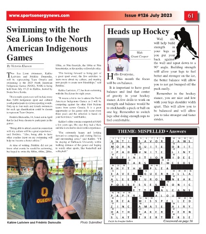 Kahlee Lariviere and Frédéric Dumoulin Photo Submitted Puzzle by Douglas Taillon Crossword on page 56