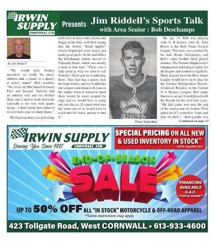 “We lived on McConnell between our scrapers and clean it off. Late in (Cornwall Royals), in the Central