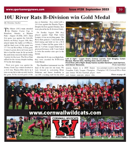 a 16-6 win. Warren Ellis drove in 4 look forward to welcoming Brian Canadian Little League Champion Champion 14U Cornwall River Rats