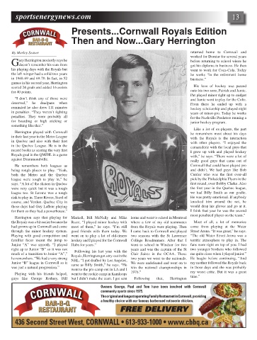 much of a transition to Junior “A”,” Royals, Herrington got a try-out in the Clair Saints in the OCAA. Those me quite close when I played junior.”