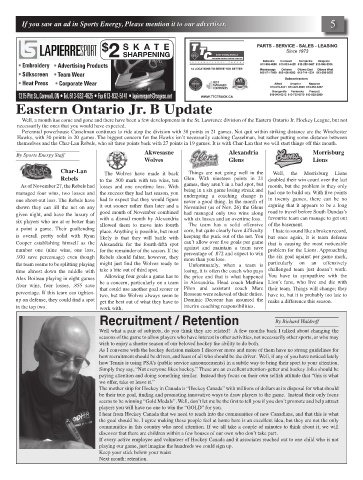 Well, a month has come and gone and there have been a few developments in the St. Lawrence division of the Eastern Ontario Jr. Hockey League, but not
