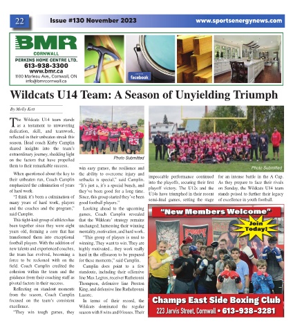 excellence. Wildcats dominated the regular 223 Jarvis Street, Cornwall • 613-938-3281