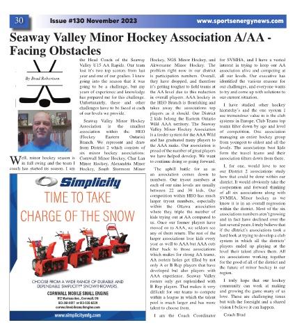 the Head Coach of the Seaway Hockey, NGS Minor Hockey, and for SVMHA, and I have a vested