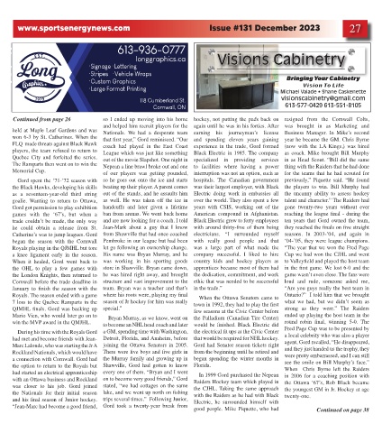Continued from page 26 so I ended up moving into his home hockey, not putting the pads back on resigned from the Cornwall Colts,