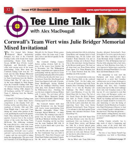 for Cornwall’s U18 Team Wright was in On the men’s side Canada’s Team On the Men’s side Team Edin from Continued on page 33