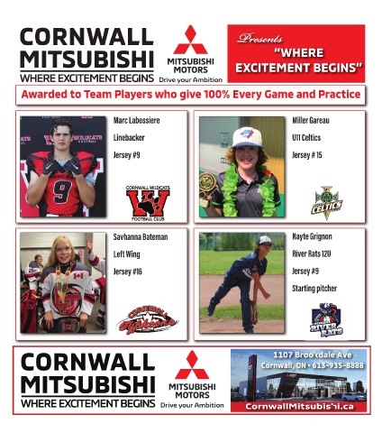 s P P sents e s t n “WHERE EXCITEMENT BEGINS” Awarded to Team Players who give 100% Every Game and Practice 1107 Brookdale Ave Cornwall, ON • 613-935-8888 CornwallMitsubishi.ca