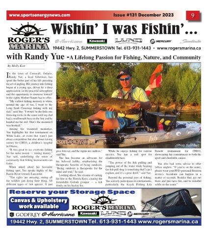 “It was great to see everyone fishing goes forever, and the sights are endless,” While he enjoys fishing for various Benefit tournament for CHEO,