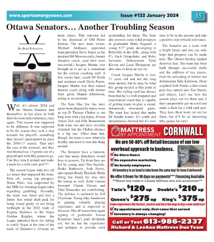 Doiron. The new team owner, in goaltender Mads Sogaard, a The Senators are a team with