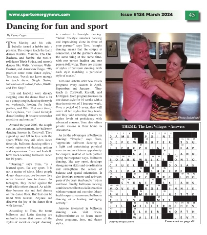 styles of social or couple dancing, Puzzle by Douglas Taillon Crossword on page 43