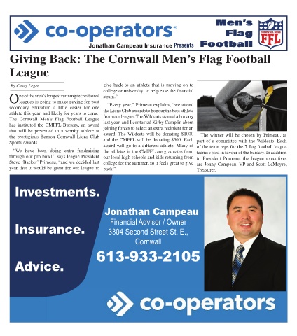 The Cornwall Men’s Flag Football League from our league. The Wildcats started a bursary