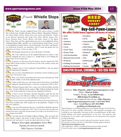 committee. My dad was inducted in 1967, and I’m sure my mom and dad were Sports Energy is a monthly publication covering the Greater Cornwall Area.