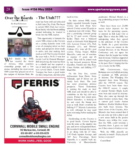 Over the Boards - The Utah??? hard for him. goaltender, Michael Hrabel, is a