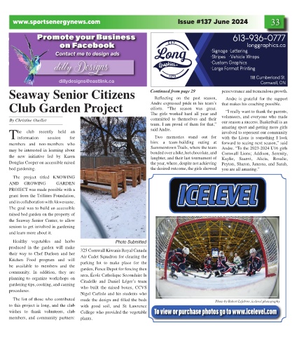 Seaway Senior Citizens Continued from page 29 perseverance and tremendous growth.